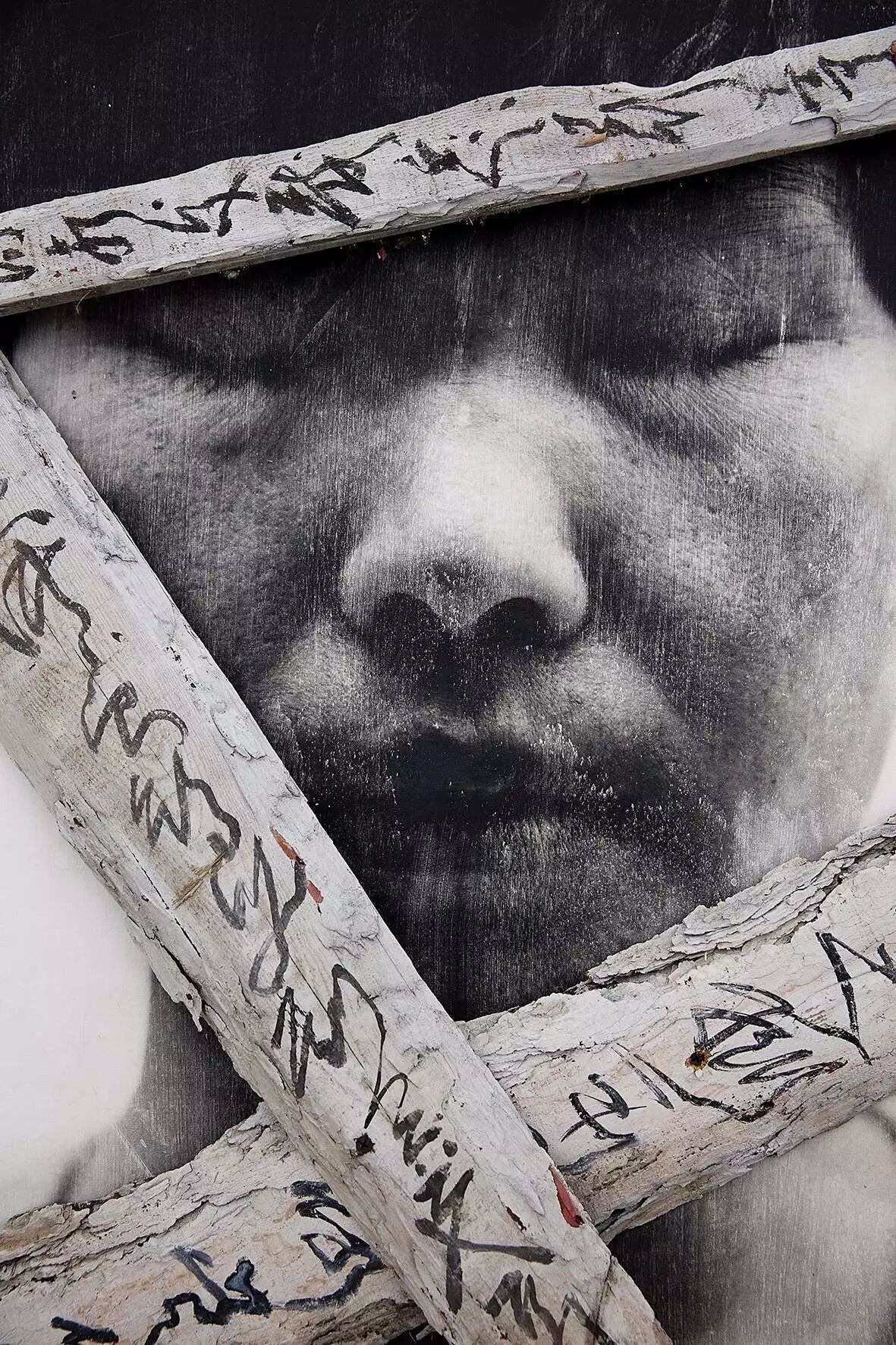 同时,艺术家增加了作品的行为部分,他首先用树脂涂抹在作品表层,在展览开幕的当天,用黑色与白色两种颜色的颜料在树脂表层进行大面积覆盖:当下我们看到的作品被黑白颜料遮挡,但随着时间的流逝,颜料会渐渐从树脂表面脱落,原有的肖像又会浮现出来。艺术家通过这种对原有摄影作品的二次干预,涂抹,遮盖,让之前的作品从有到无,又从无到有,当颜料脱落,这一刻的作品便成为了上一刻作品的过去时,上一刻的结束便缔造了这一刻作品新的开始。在本就真实的作品中,艺术家通过自我辩证的形式试图探索更加真实的样子。用高波自己的话说就是:“Je cherche lavéritédans la vérité.” (我寻找真实之中的真实。)