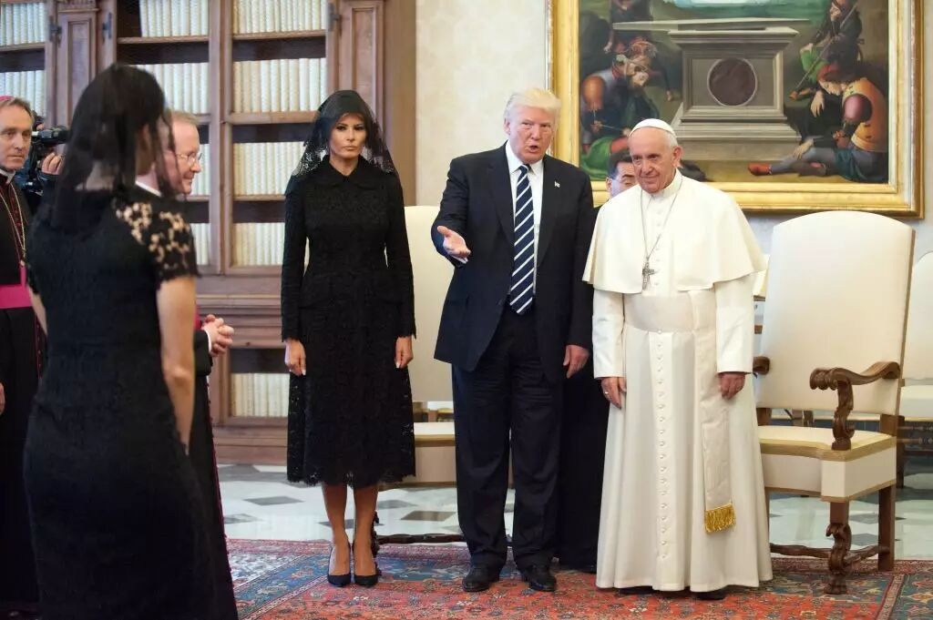 5月24日,美国总统特朗普出访梵蒂冈并与教皇方济各(Pope Francis)进行会谈。会面中,两人一扫去年的矛盾与分歧,并探讨了反恐、人权和气候变暖等诸多议题。在礼物交换环节,教皇将一个由罗马艺术家制作、象征和平的橄榄树状圆形浮雕赠送给特朗普。而这位不久前提案削减对艺术机构资金支持的总统则回应“我们可以利用和平”,并在随后发推文称自己将“更加坚定地追求世界和平”。