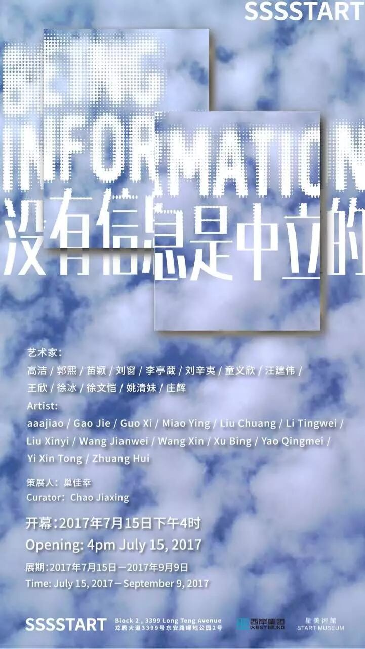上海当代艺术项目空间 SSSSTART 将揭开一档名为“没有信息是中立的”(BEING INFORMATION)的持续性展览研究项目。SSSSTART 项目是收藏家何炬星创办的上海星美术馆(Start Musem)筹备组的基地所在,后者计划将于2017年内正式开幕。面对正在急速壮大、并且俨然成为权利系统的信息,艺术家正身体力行地探索,将创作化为处理信息的新工具的可能。本次展览将于7月15日下午4时开幕,持续至9月9日。——SSSSTART