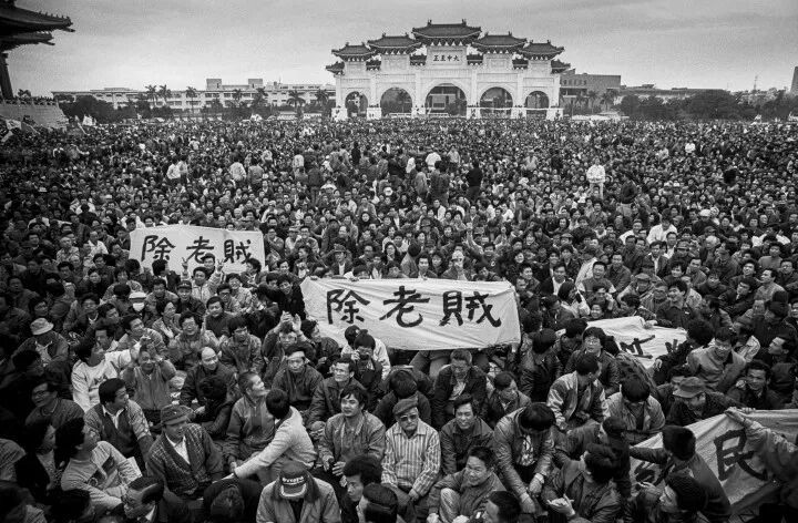 ▲ 1990年3月18日,民进党在蒋介石纪念堂举行了一场宣誓集会,以“消灭旧卫兵,拯救国家”。 摄影师:许伯鑫,图片来源:台北市立美术馆