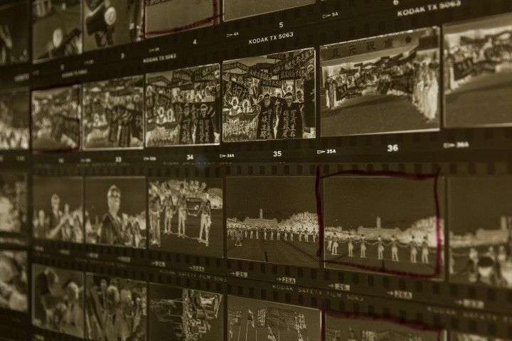 展览二楼模拟摄影师的工作室和胶卷底片时代新闻编辑台的图像处理状态,以灯箱展示胶卷负片连拍画面,与冲洗放大的黑白照片并列,模拟摄影师如何借颗粒粗细、反差、失焦、晃动等手法,创造自己的影像语言、抒发个人意见。刘振祥、黄子明与许伯鑫三位最具代表性的新闻摄影师均出生于戒严令时期,其作品各设展台,每张桌子后面有一面墙的背光底片,清晰陈列整个胶卷和摄影师的标记。观众还可通过手机摄像头来反转底片。