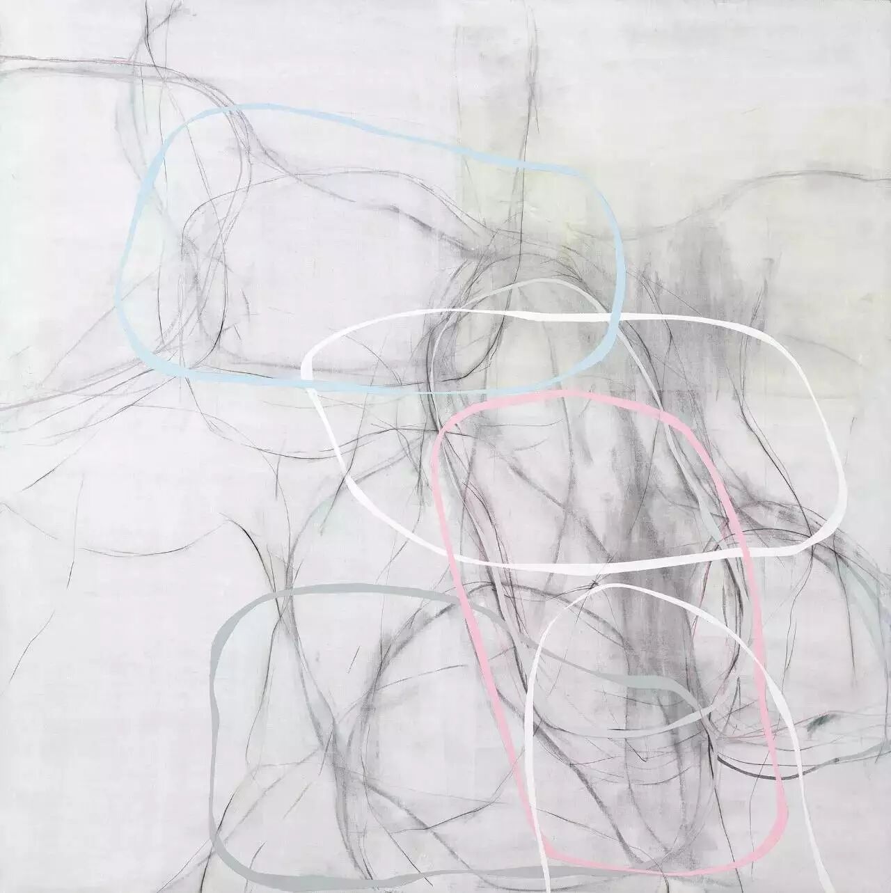 ▲上图为周力《线—白影之二(2016年)》,下图为《窗中世界之十二(2001年)》,于2017年参展蜂巢(北京)当代艺术中心“生生如环”,图片来源:蜂巢(北京)当代艺术中心