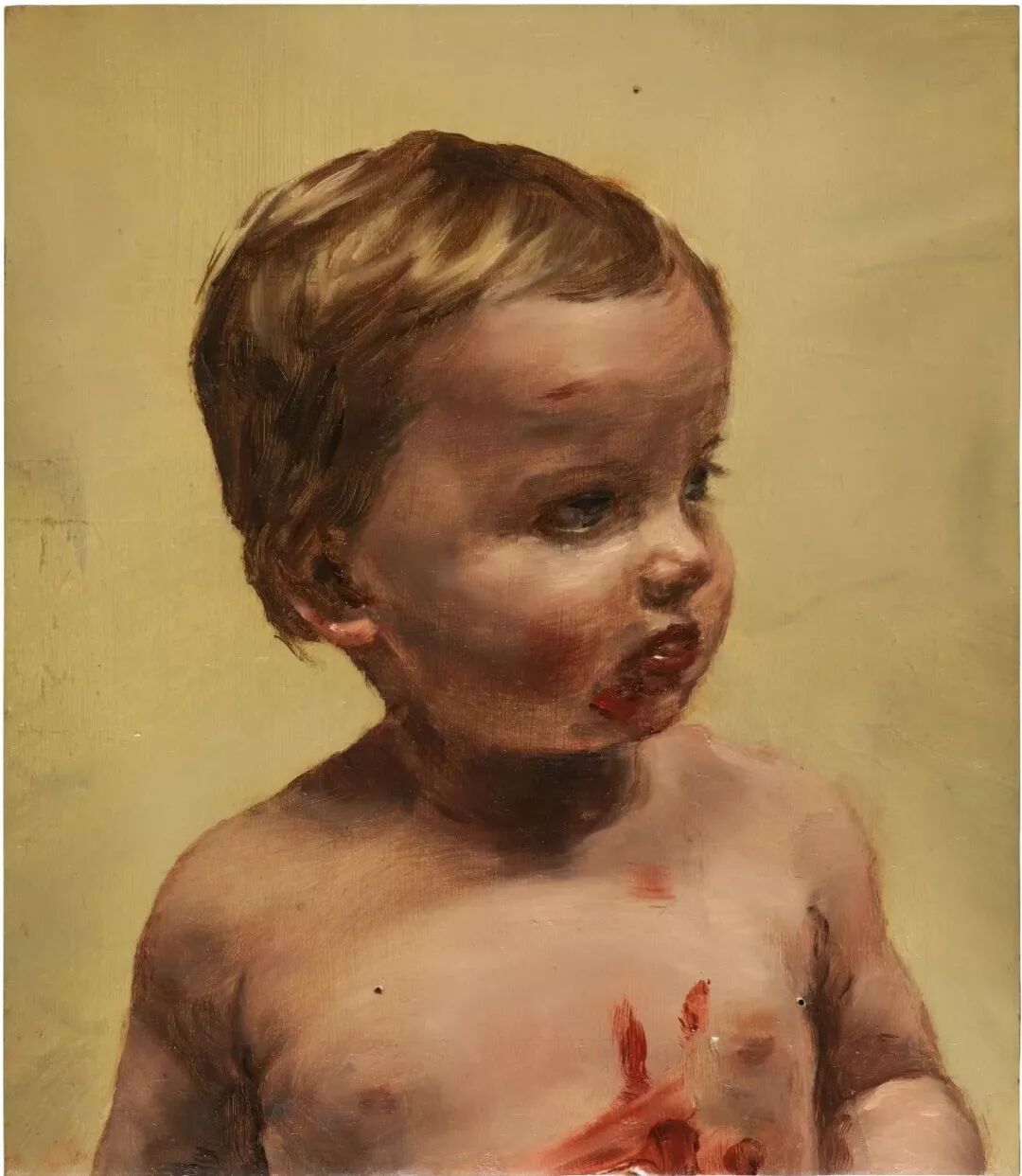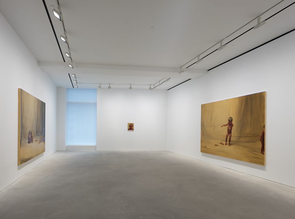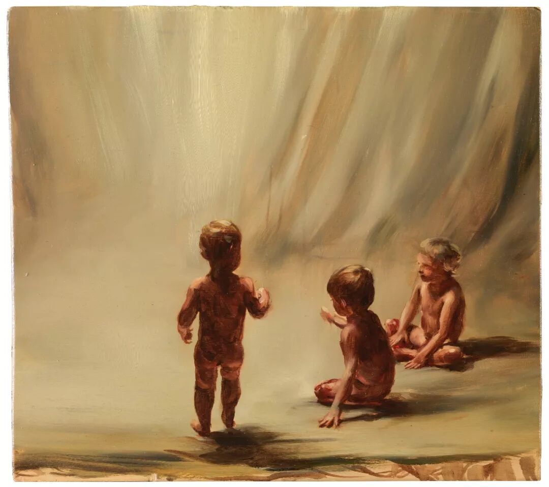 此次博伊曼斯的个展“太阳的火焰”(Fire from the Sun)在卓纳画廊的双层空间(H Queen’s 五楼与六楼,约1000平米)展出29件作品。画作的主角是幼童,伴有科学实验的仪器出现。在赭石色、砂砾色的色调之下,幼童或单独或集群玩耍。这些文艺复兴时期绘画中的“小天使”本应单纯无邪,却在画面里流露出他们暴力、邪恶的一面。