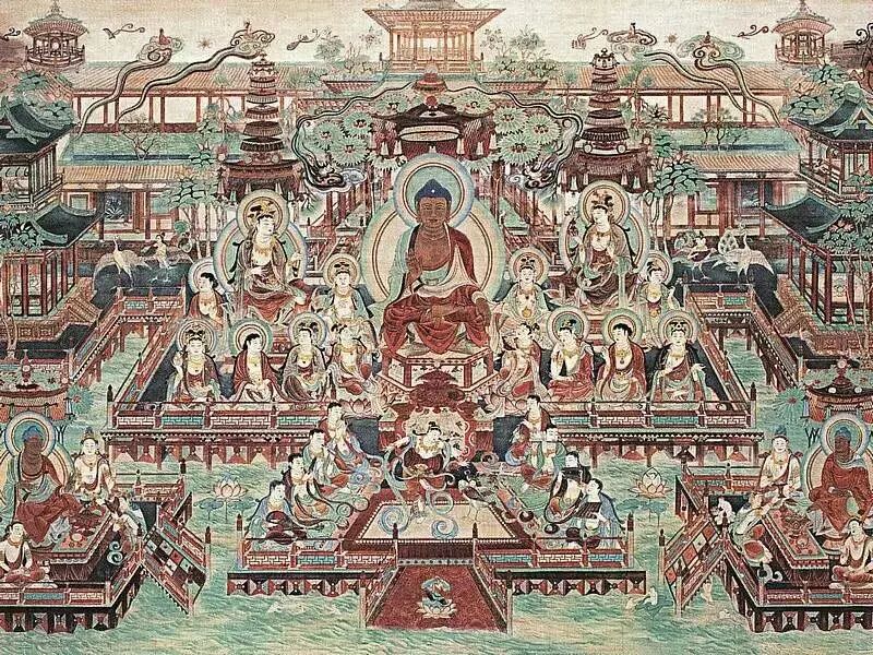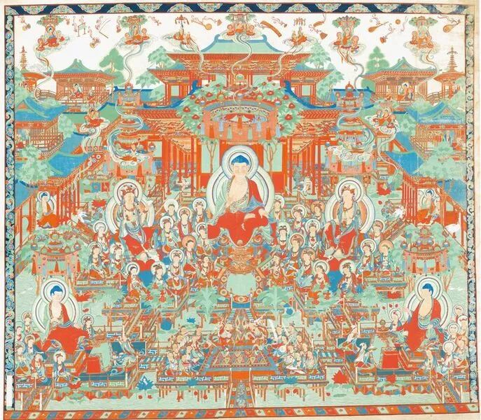 ▲ 临摹盛唐西方净土变图轴,四川博物院藏,图片来源:中国国家博物馆