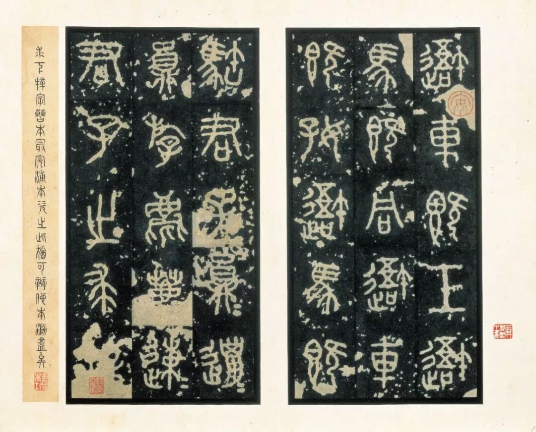 ▲“吴昌硕和他的时代”展览现场的石鼓文拓本,图片来源:twitter