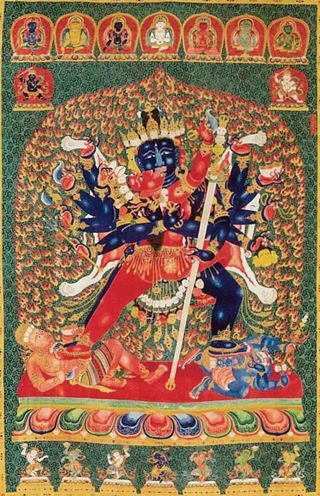 ▲ 永乐年施刺绣大威德金刚唐卡,图片来源:首都博物馆