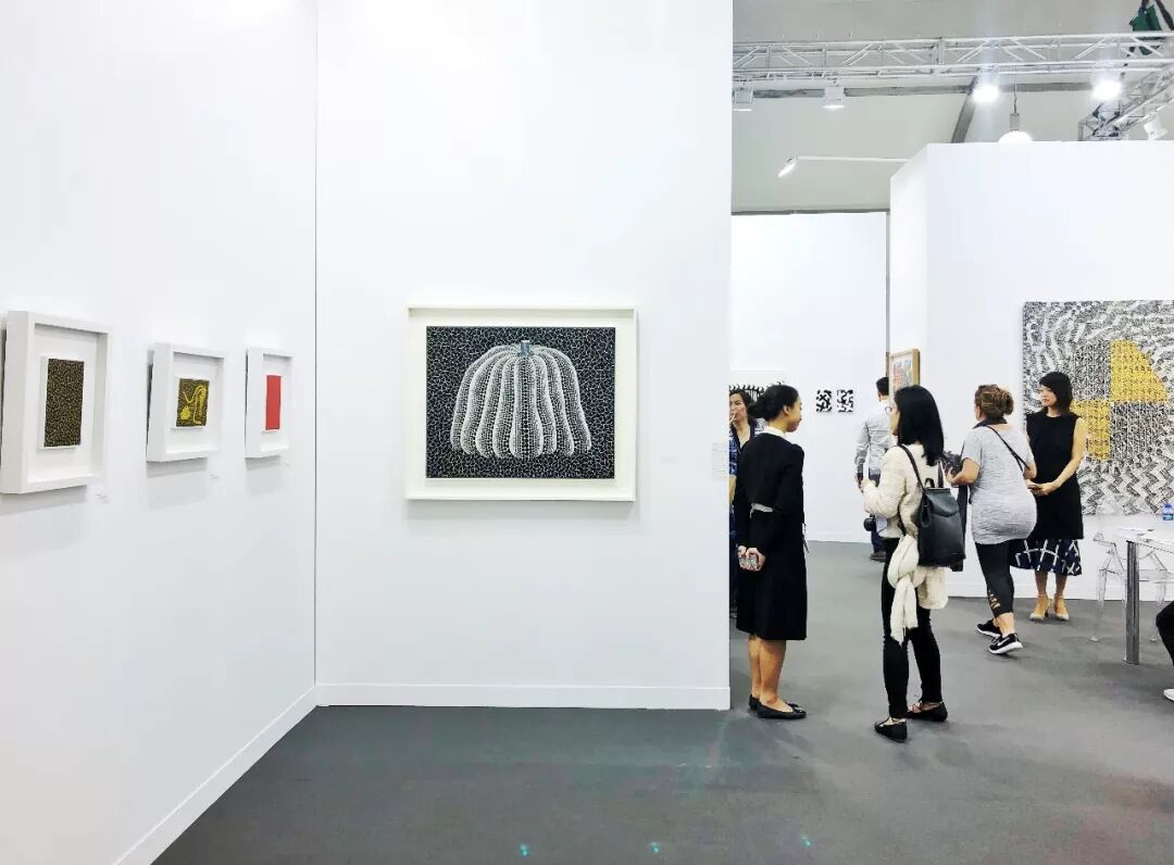 到今年,白石画廊已经是第三次参加 Art Central。作为一家代理了很多日本艺术家的画廊,白石的展位上陈列着不少大家熟知的草间弥生、奈良美智这样的名家作品。其中最为重要的一件是一幅大尺寸的草间弥生绘画《Infinity-Nets [PERR] (#2645)》,标价190万美元。
