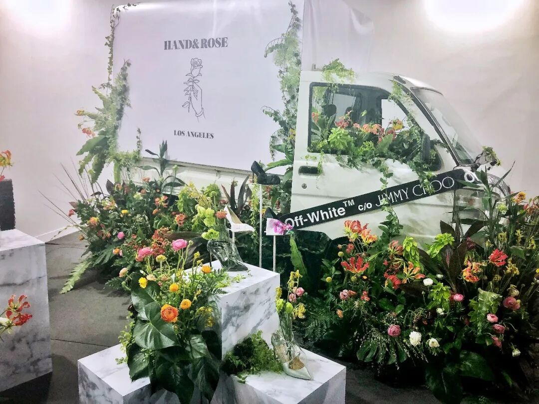 ▲ Jimmy Choo 的展位现场联合花艺设计师共同呈现 Off-White 系列产品