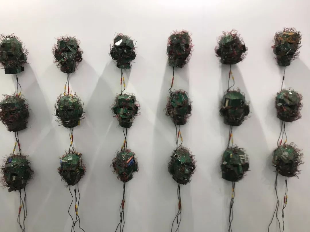 同样选择参展 Art Central 的欧洲画廊还有来自巴黎、偏爱售卖街头艺术的 Danysz Gallery,这个在上海也设立了空间的法国画廊此番首次参加 Art Central,带来了艺术家刘勃麟的大型装置《When you see me I see you》(2017)。整墙由屏幕、网络摄像机和电线组成的“电路板立体面具”让人联想起汉代金缕玉衣,只是玉片变成了具有相似绿色的电路板片,这件装置售价55万港元。“来看 Art Central 的人才是我们真正的客户群体所在,所以这个展会已经足够能满足我们画廊的需求,而香港巴塞尔相比之下可能更适合出售博物馆级别的艺术品。” Danysz Gallery 的画廊主 Magda Danysz 坦言。