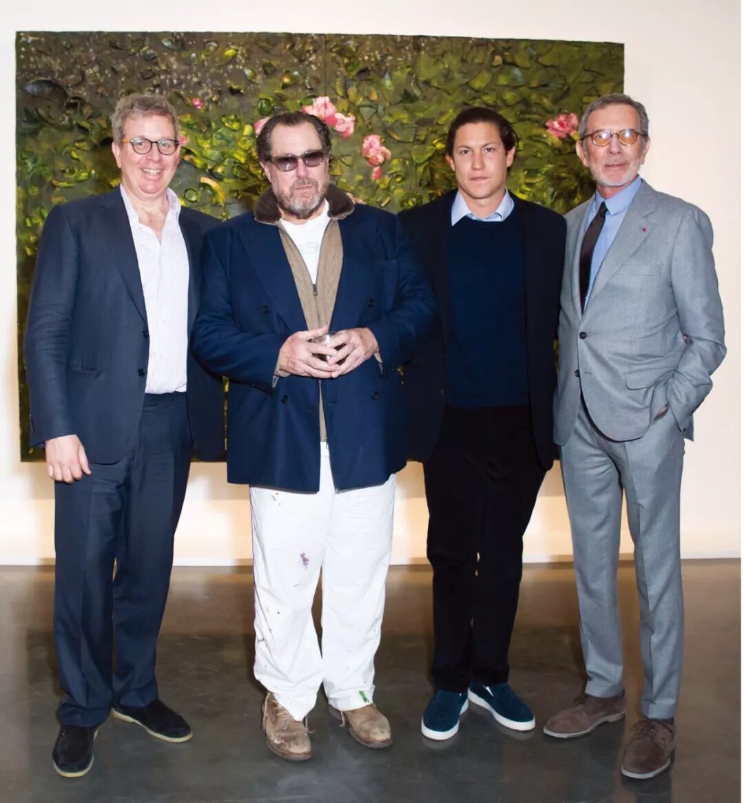 佩斯画廊的马克·格里姆彻、艺术家朱利安·施纳贝尔(Julian Schnabel)和他的儿子维托(Vito)以及佩斯画廊创始人阿恩·格里姆彻,图片来源:The Art Newspaper