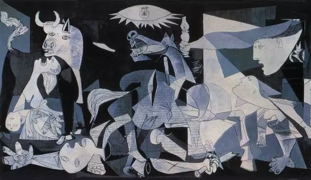 巴勃罗·毕加索,《格尔尼卡》(Guernica),布面油画,349 × 776 cm,1937年,现藏于圣索菲亚王后国家艺术中心博物馆(Museo Nacional Centro de Arte Reina Sofía),图片来源:Wikipedia