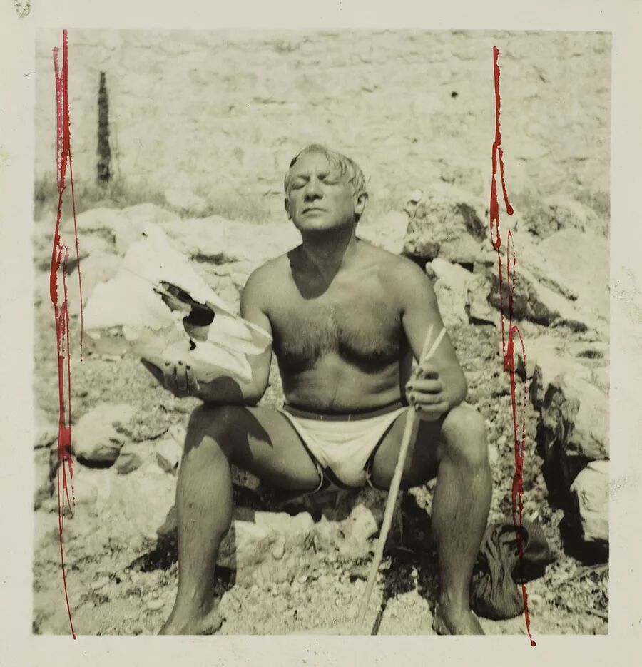 鲜少有人知道的是,毕加索也出现在了朵拉一系列的艺术创作中。在她创作于1937年的作品《米诺陶毕加索》(Picasso as a Minotaur)中,穿着泳裤的毕加索闭眼手托着牛头骨,由此,毕加索知名的大男子主义和他本人变成了朵拉创作中的主题——他同时也成为了朵拉的缪斯。