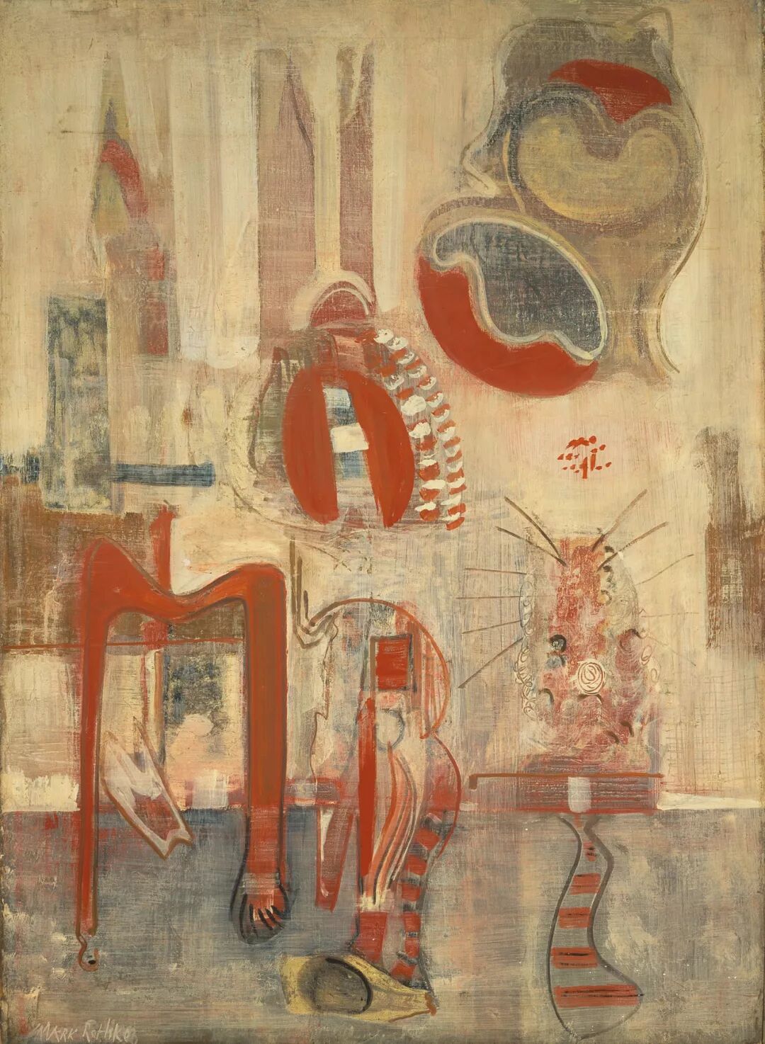 随着1930年代大萧条的到来,罗斯科在1936年至1937年间受雇于联邦职业促进管理局(Federal Works Progress Administration,WPA),该机构是罗斯福新政的一部分,由联邦政府资助的艺术项目在1935年至1943年间曾雇用数千名艺术家和创意人员,其中也包括杰克逊·波拉克、李·克拉斯纳、威廉·德库宁等后来的一批抽象表现主义大师。如果说罗斯科在1920年代至1930年代的早期具象作品还保留着塞尚等艺术家的影响,1936年纽约现代艺术博物馆举办的大展“神奇的艺术,达达,超现实主义”(Fantastic Art, Dada, Surrealism)将其风格引向了另一次的转向,并于1940年代,逐渐走向成熟。
