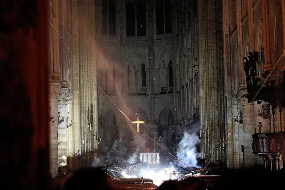 巴黎圣母院火灾现场内部。图片来源:Philippe Wojazer/AP