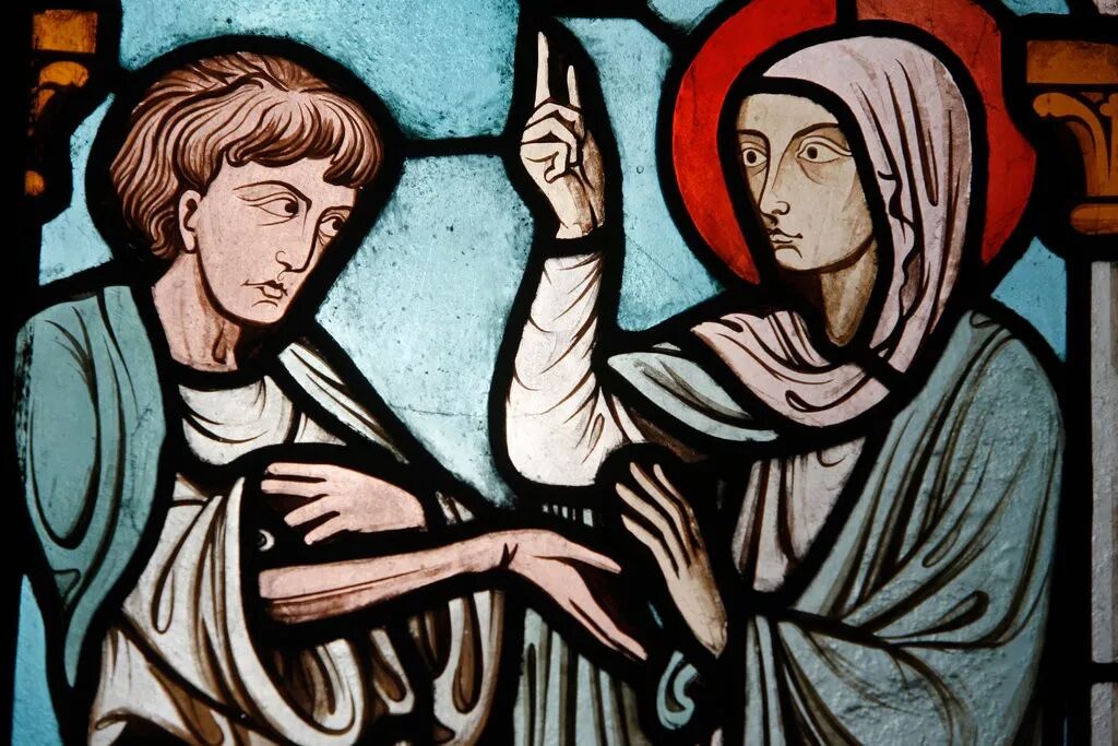 巴黎圣母院大教堂修道院的彩色玻璃局部,描绘了圣吉纳维芙的故事,据传,圣吉纳维芙经常被认为是拯救巴黎的守护神,通过集体祷告的力量于451年胜利地领导巴黎人面对匈奴王的防御。Credit:Godong / UIG-Getty Images