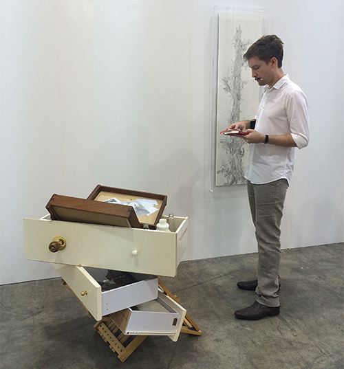 对本地艺术家感兴趣的,除了藏家,还有非本地的画廊。来自东京的Shugo Arts在这次香港巴塞尔艺术展上带来了本地目前最具国际知名度的艺术家李杰的三幅近作。14号VIP预展日开幕30分钟内就卖掉了两幅,15号卖掉了另外一幅,统共价值5.9万美金。画廊主Shugo Satani不愿意透露藏家的身份,但指出作品被如此快的卖掉,是因为有早已熟悉并喜爱李杰的藏家,在此次香港巴塞尔艺术展上积极“寻宝”。Shugo Satani自述,他在数年前从一次Osage筹划的群展上首次知悉李杰的作品,立刻就被他的独特性吸引,“他的作品像一曲深沉的歌,是香港的,但在更宽泛的层面,也是亚洲的,同时展现出对西方文明的深刻理解”。另外,Shugo Satani表示他还有几位十分喜爱的香港艺术家,不排除未来与他们再合作的关系。