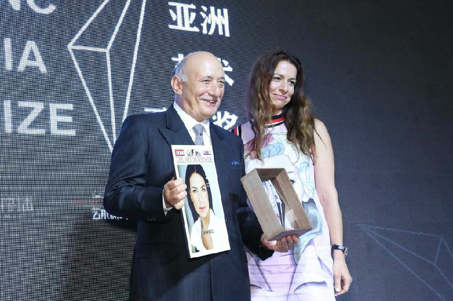 收藏家Uli Sigg与颁奖人纽约古根海姆美术馆亚洲艺术部三星高级策展人Alexandra Munroe